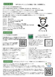 今回、こども食堂・フリースクール・フードバンクなど多様な居場所づくりを進めてきた、NPO法人キリンこども応援団代表・水取博隆さんを講師にお迎えします。