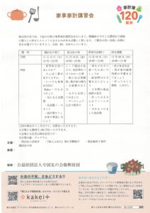 福山友の会では、下記の日程で家事家計講習会を行います。