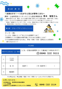 【11/29】こども・若者の居場所づくり講演会 未来のタネ~つながりと安心が芽吹くまち~